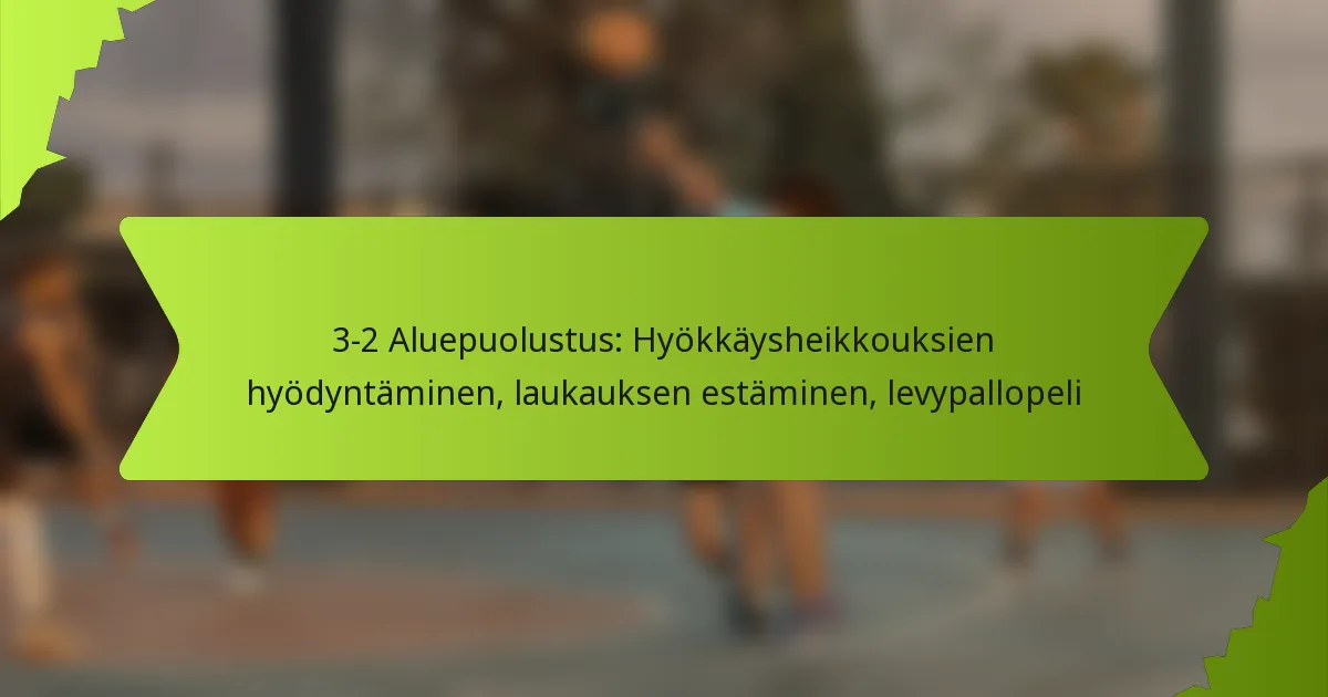 Puolustuslevypallojen varmistaminen 3-2 aluepuolustuksessa vaatii tehokkaita estotekniikoita. Pelaajien tulisi keskittyä luomaan kontaktia vastustajiinsa heti, kun heitto lähtee, käyttäen kehoaan pallon suojaamiseen. Tämä voi estää hyökkääviä pelaajia pääsemästä selkeälle reitille levypallon perään.