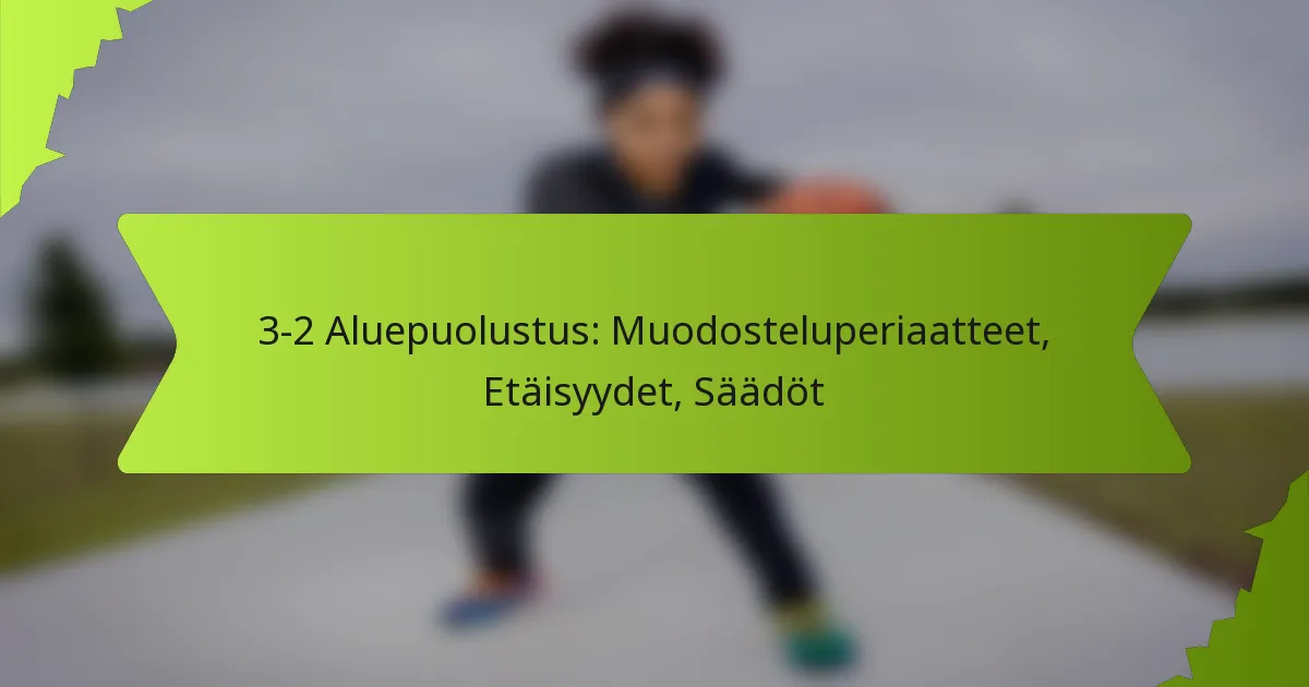 3-2 aluepuolustus on strateginen koripallomuoto, jossa kolme pelaajaa on sijoitettu ympäri kentän reunoja ja kaksi korin läheisyyteen, mikä suojaa tehokkaasti ulkopuolisilta heitoilta samalla kun tuetaan sisäpuolustusta. Oikea välimatka tässä muodossa on elintärkeää puolustuksen eheyden ylläpitämiseksi, jolloin pelaajat voivat kattaa syöttölinjat ja estää hyökkäyksen tunkeutumisen. Lisäksi ajoissa tehtävät säädöt ovat ratkaisevia vastustajien strategioiden vastaamiseksi ja kokonaispuolustuksen tehokkuuden parantamiseksi.
