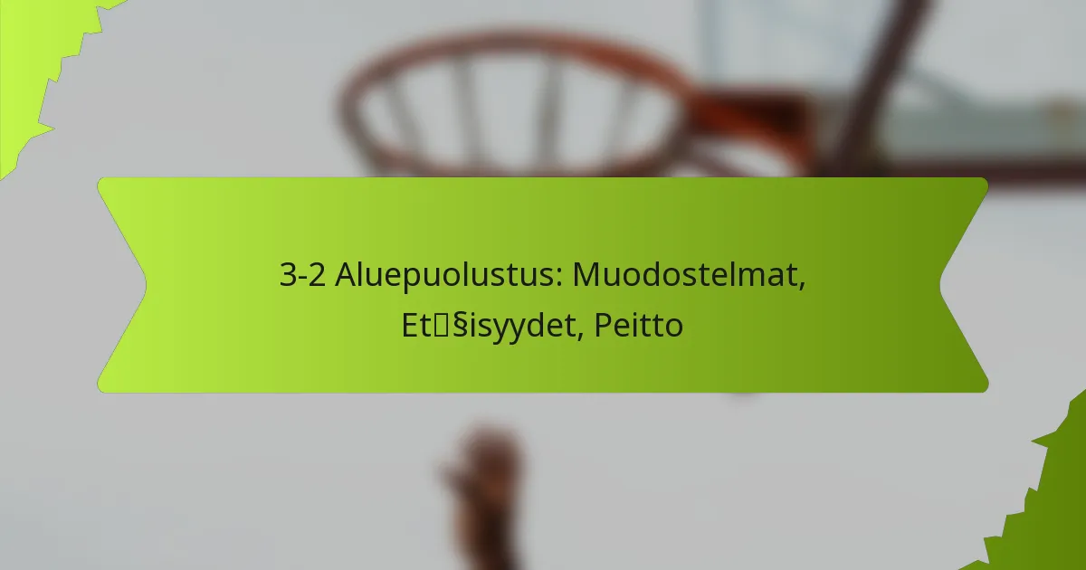 3-2 aluepuolustus on strateginen koripallomuoto, jossa kolme pelaajaa on sijoitettu ympäri kenttää ja kaksi lähempänä koria. Tämä järjestely on suunniteltu tarjoamaan tasapainoista peittoa ulkopuoliselle heittämiselle ja sisäiselle pisteytykselle, joten on olennaista, että joukkueet ymmärtävät pelaajien sijoittamisen ja välimatkat. Oikea välimatka alueella on ratkaisevan tärkeää tehokkaalle puolustukselle, sillä se mahdollistaa pelaajien nopean reagoinnin hyökkäysliikkeisiin samalla, kun se minimoi vastustajan pisteytysmahdollisuudet.