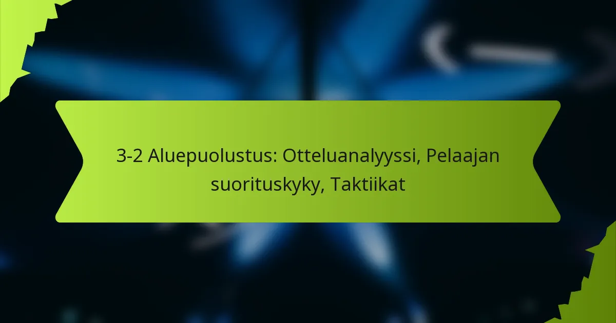 3-2 aluepuolustus on strateginen koripallomuoto, joka on suunniteltu tasapainottamaan ulkopuolista ja sisäistä puolustusta, jossa kolme pelaajaa keskittyy vartioimaan ulkopuolta ja kaksi on sijoitettu puolustamaan maalia. Tämä lähestymistapa on erityisen tehokas joukkueita vastaan, jotka riippuvat ulkopuolisesta heittämisestä, sillä se häiritsee hyökkäyspeliä ja rajoittaa pisteytymismahdollisuuksia. Pelaajien suorituskykymittarit, kuten puolustavat levypallot, riistot ja torjunnat, ovat ratkaisevia tämän puolustusstrategian tehokkuuden arvioimisessa sekä jokaisen pelaajan yksilöllisten panosten arvioimisessa.