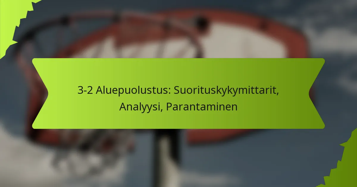 3-2 aluepuolustus on taktinen lähestymistapa, jota käytetään yleisesti koripallossa korin suojaamiseksi samalla kun hallitaan ulkopuolisia uhkia. Asettamalla kolme pelaajaa lähelle koria ja kaksi ulkopuolelle, tämä muodostelma pyrkii luomaan tasapainoisen puolustusstrategian. Sen suorituskyvyn analysoiminen mittareiden, kuten sallittujen pisteiden, levypallojen ja heittoprosenttien, avulla on ratkaisevan tärkeää ymmärtää sen tehokkuus erilaisia hyökkäysstrategioita vastaan.